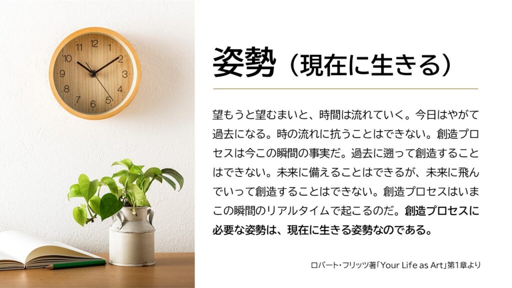 どれだけ準備を重ねても、どれだけ過去を振り返っても、創造的な行動ができるのは “いま” この瞬間だけです。