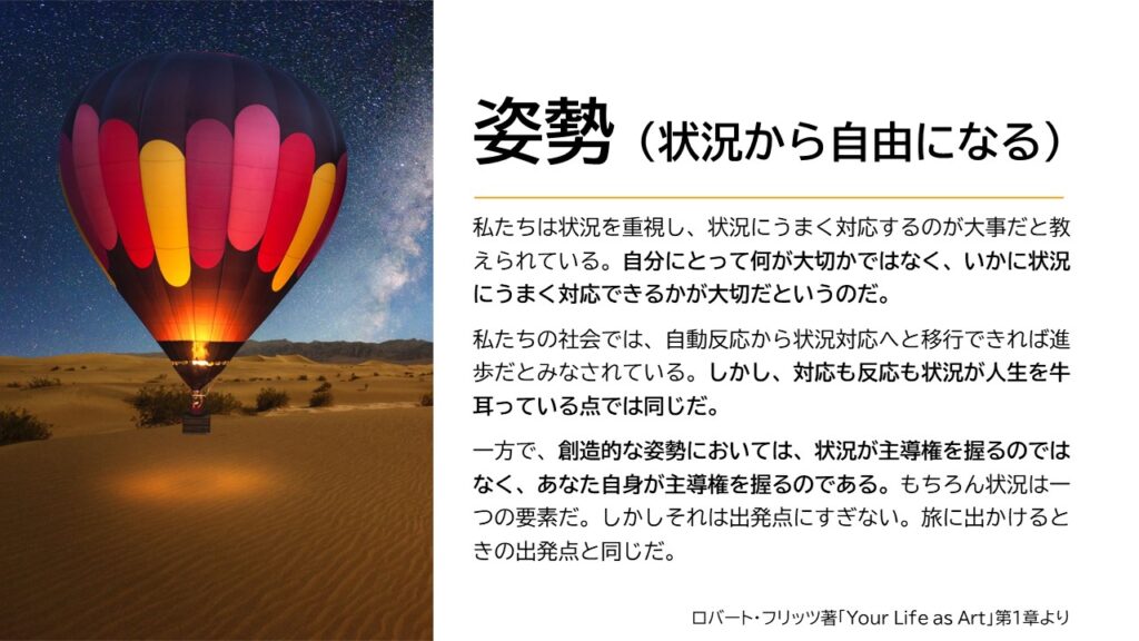 リーダーに求められるのは、状況を出発点にしながら、自分たちの志や価値観で主導権を取り戻すことです。